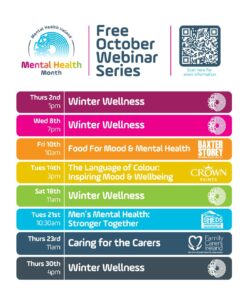 Mental Health Ireland are running FREE webinar series through out the month of October. Booking is Required