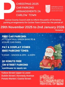Please find information on the Christmas 2025 Car Parking arrangements in Carlow Town