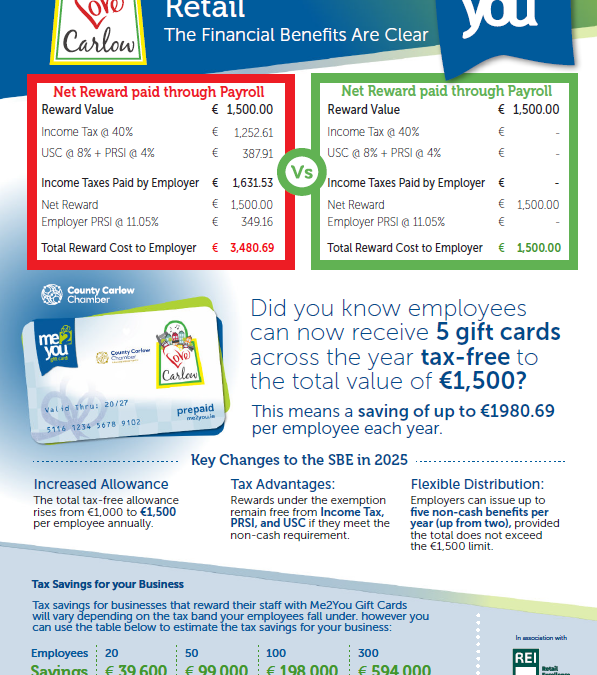 Shopping local has never been more important. It is vital that we get the message out to consumers that keeping our spend in our community benefits everyone.  As a Chamber we collaborate with the Local Enterprise Office and other stakeholders in the Shop Local Shop Carlow campaign.  We also have the Love Carlow gift cards – which make gifting and supporting local simple and hassle-free.